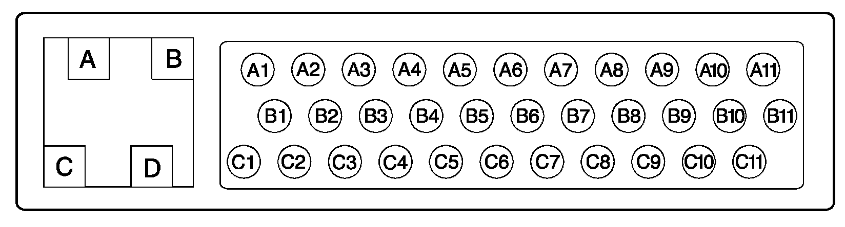 Harness Connector End View and Pin Layout Diagram