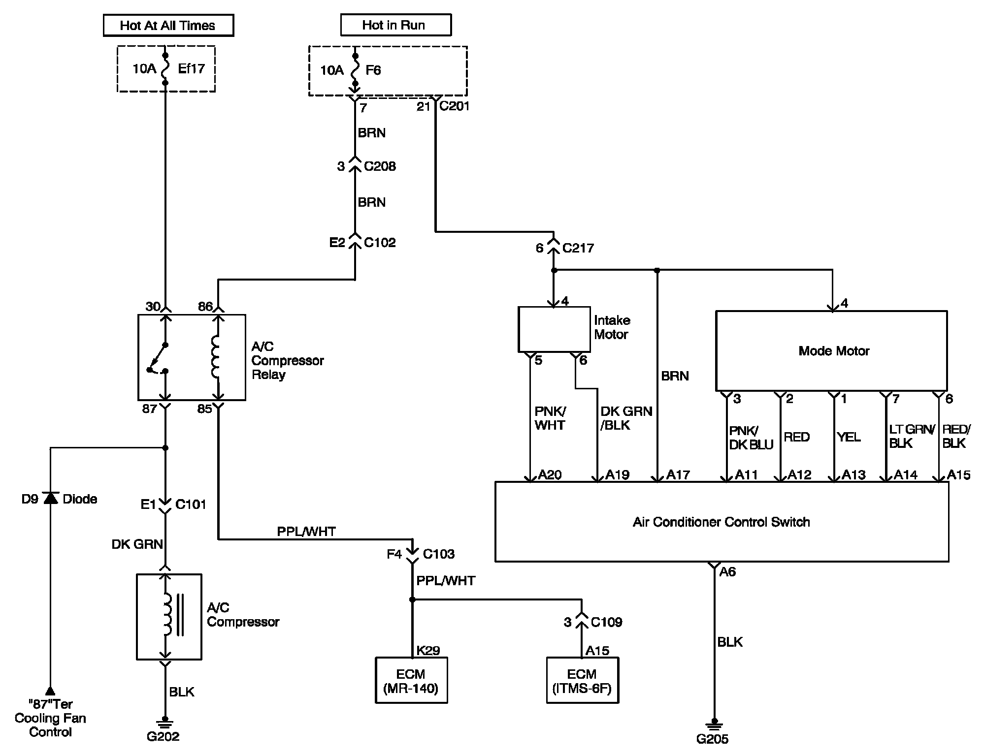Manual Control A/C System Circuit Diagram: