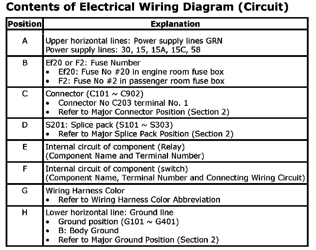 Contents of Electrical Wiring Diagram (Circuit)