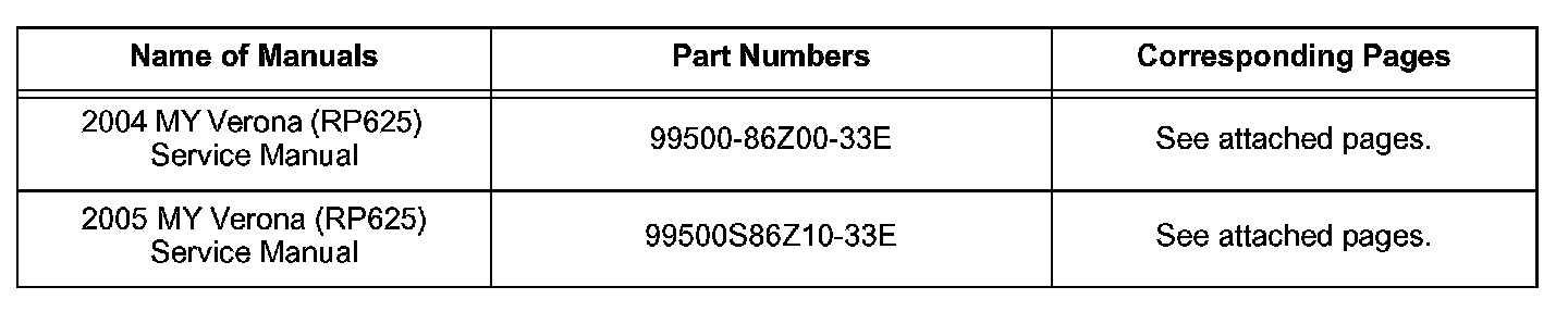 NOTE: These updates will reflect in future printings of the service manuals. If the reprint date on the inside back cover of the manual is later than the issue date of this bulletin, the manual will have been updated.