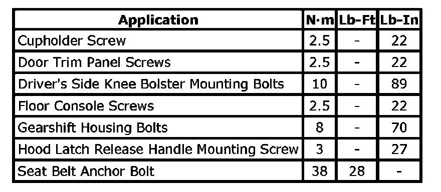 Tightening Torque Specifications: