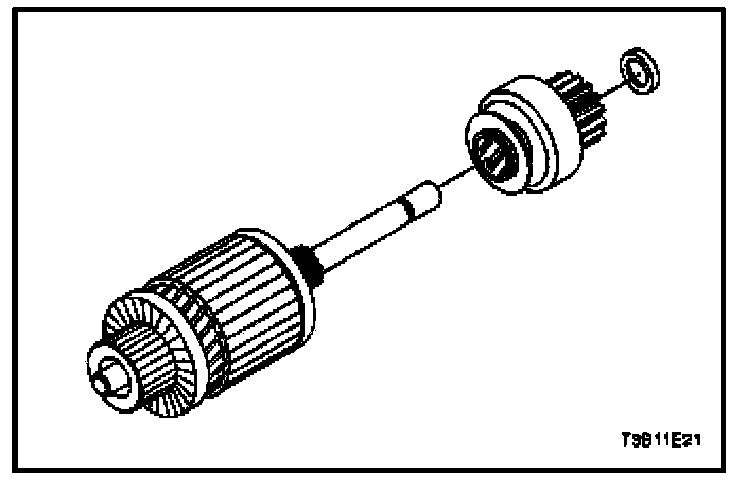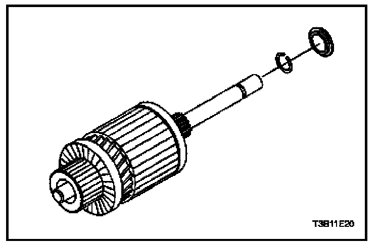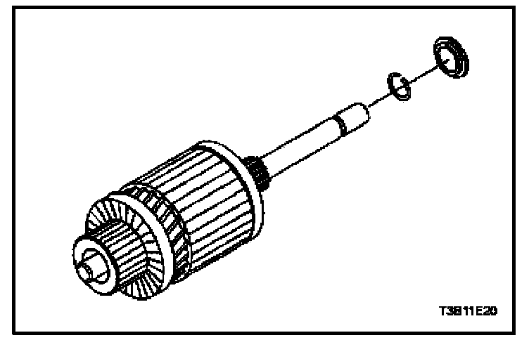 25. When the starter motor is disassembled and the solenoid is replaced, it is necessary to check the pinion clearance.