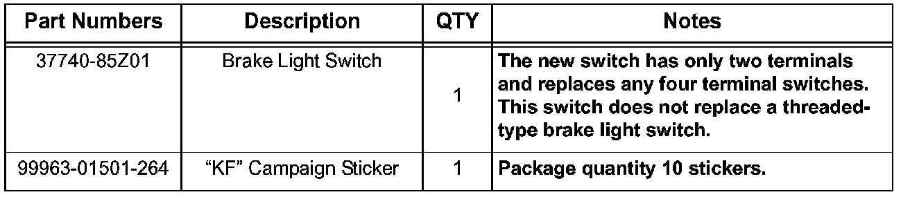 SUBJECT: BRAKE LIGHT SWITCH REPLACEMENT "KF" CAMPAIGN