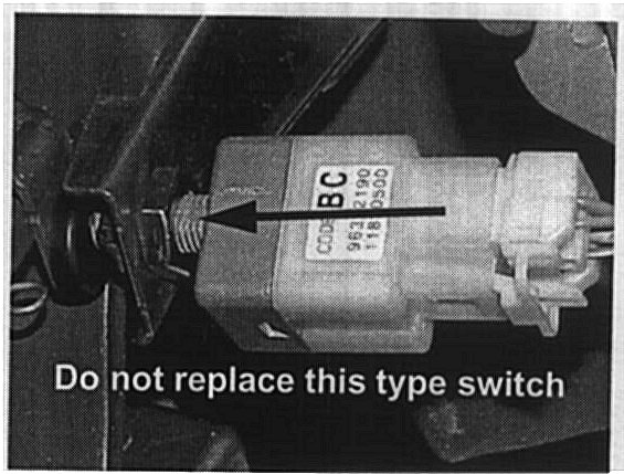 2. Check the brake light switch and make sure it is not a threaded-type switch. The threaded type brake light switch is not included in this recall; do not replace a threaded-type switch.