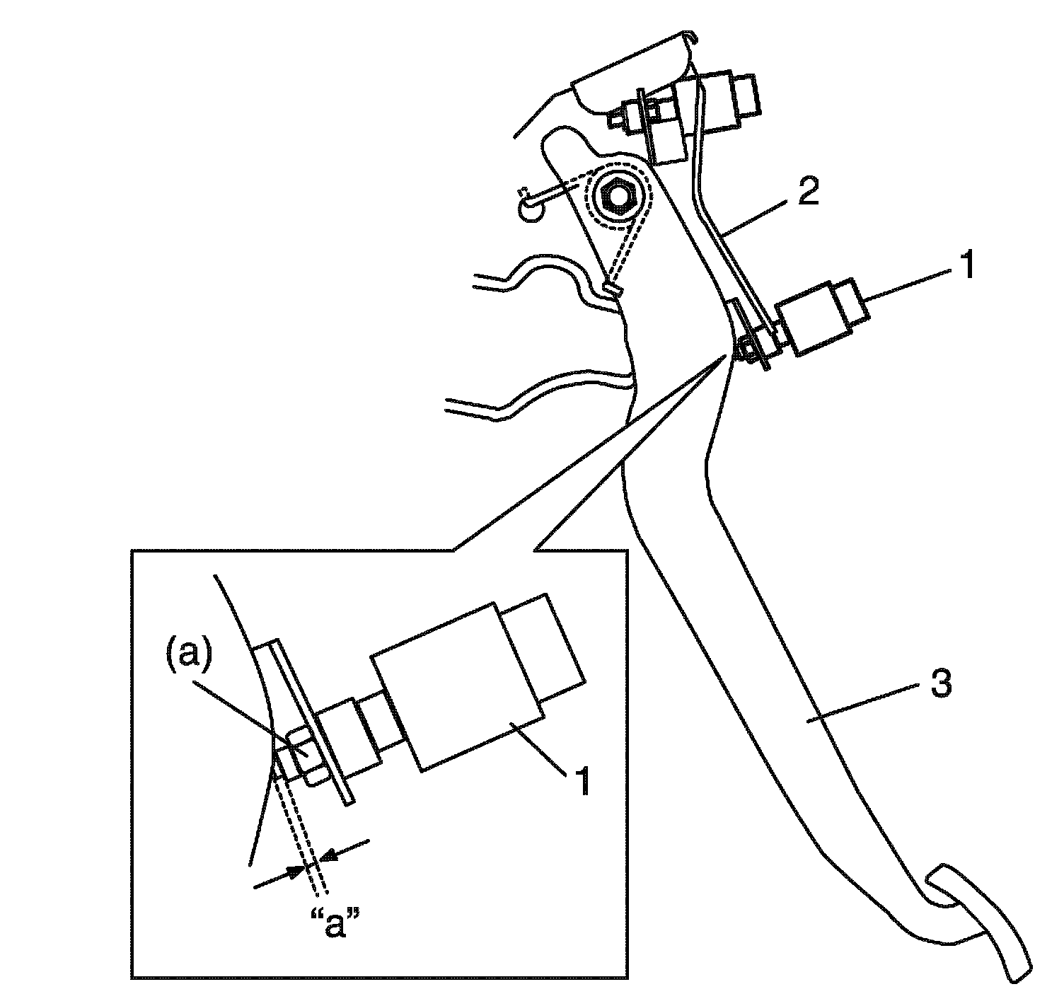 1. Install CPP switch (1) to pedal bracket (2).
