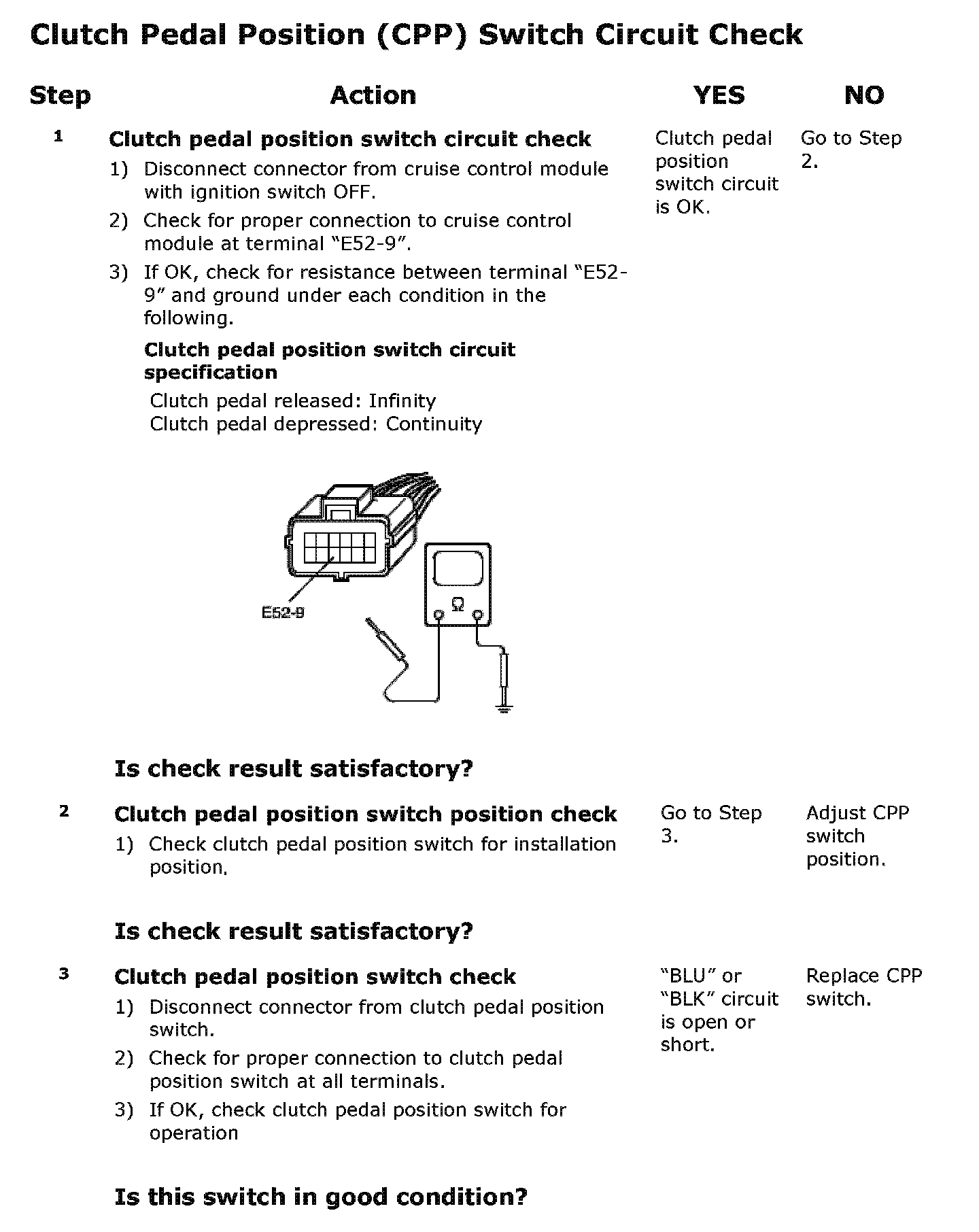 Clutch Pedal Position Switch Circuit Check