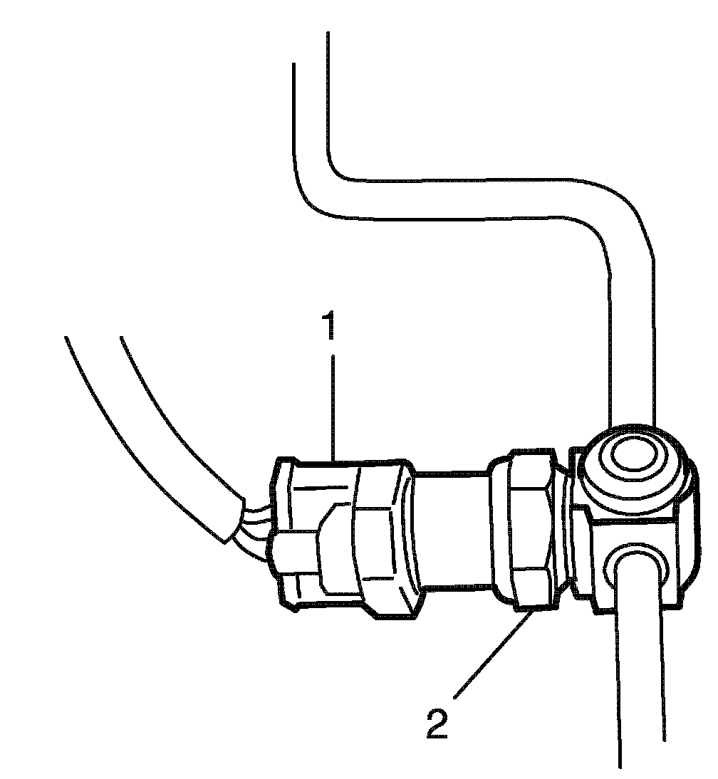 5. Remove A/C refrigerant pressure switch (2) from refrigerant pipe.