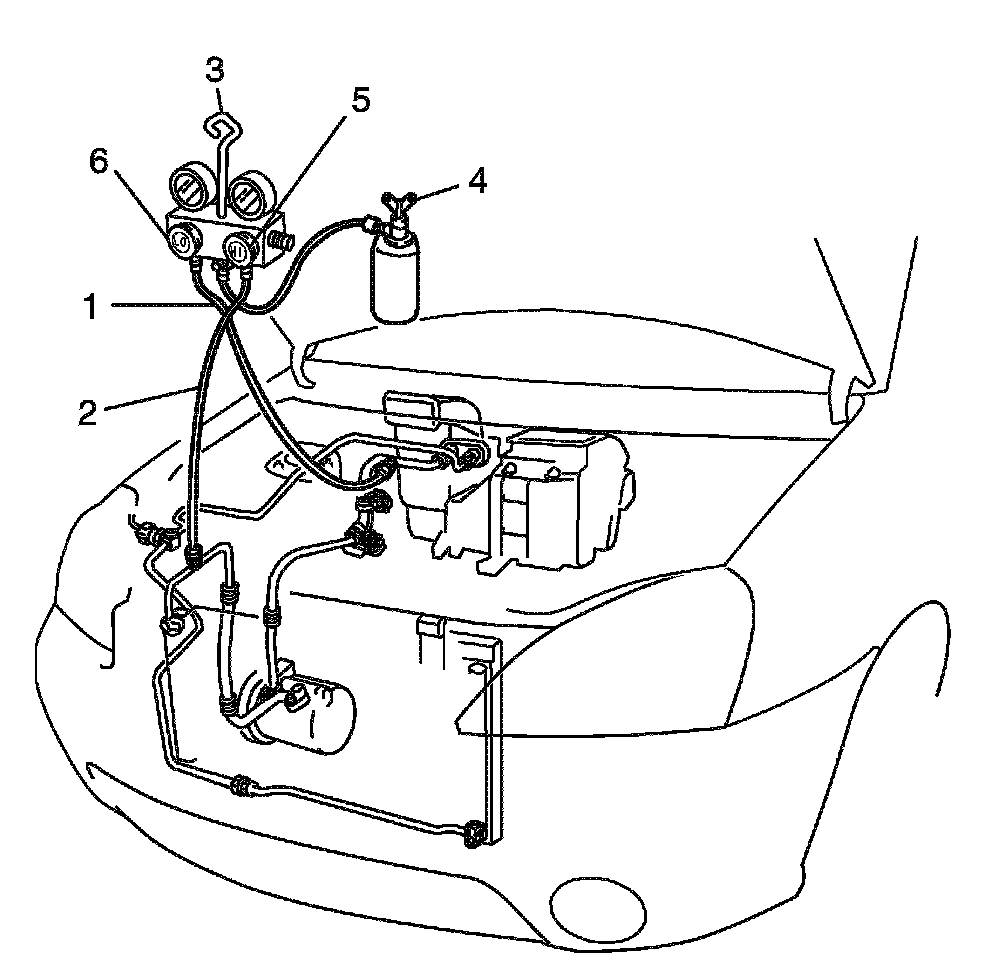 Checking of A/C System for Pressure LeaksAfter completing the evacuation, close manifold gauge high pressure valve and low pressure valve, and then wait 10 minutes. Verify that low pressure gauge reading has not changed.