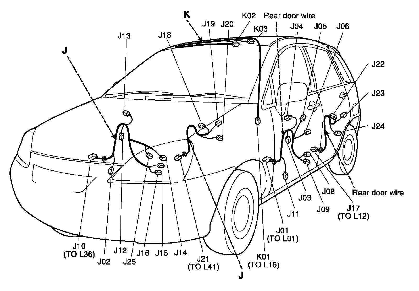 J: Front Door Wire, Rear Door Wire / K: Roof Wire View: