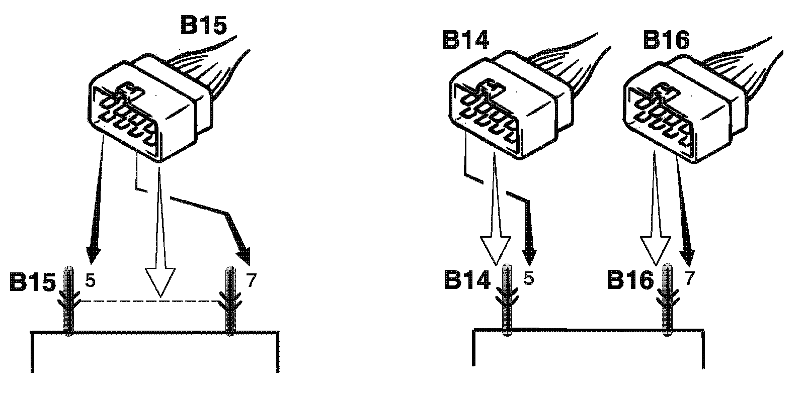 3. Terminals in one connector (Broken line) (B15)/Terminals in different connectors (B14, B16)