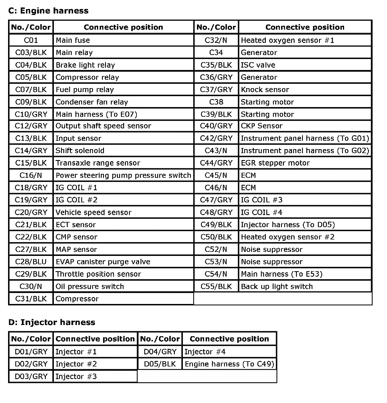 C:Injector Harness / D: Injector Harness Index: