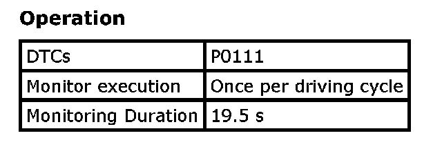 Refer to DTC P0111: Intake Air Temperature Circuit Range / Performance. P0111