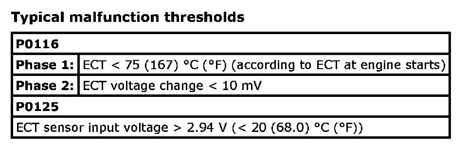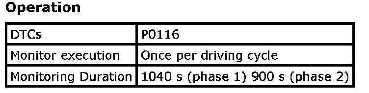 Refer to DTC P0116: Engine Coolant Temperature Circuit Range / Performance. P0116