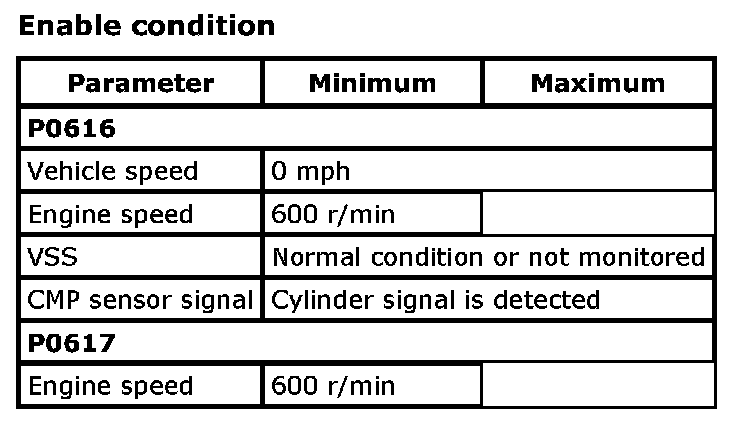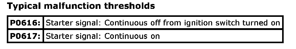 Refer to DTC P0617: Starter Relay Circuit High. P0617