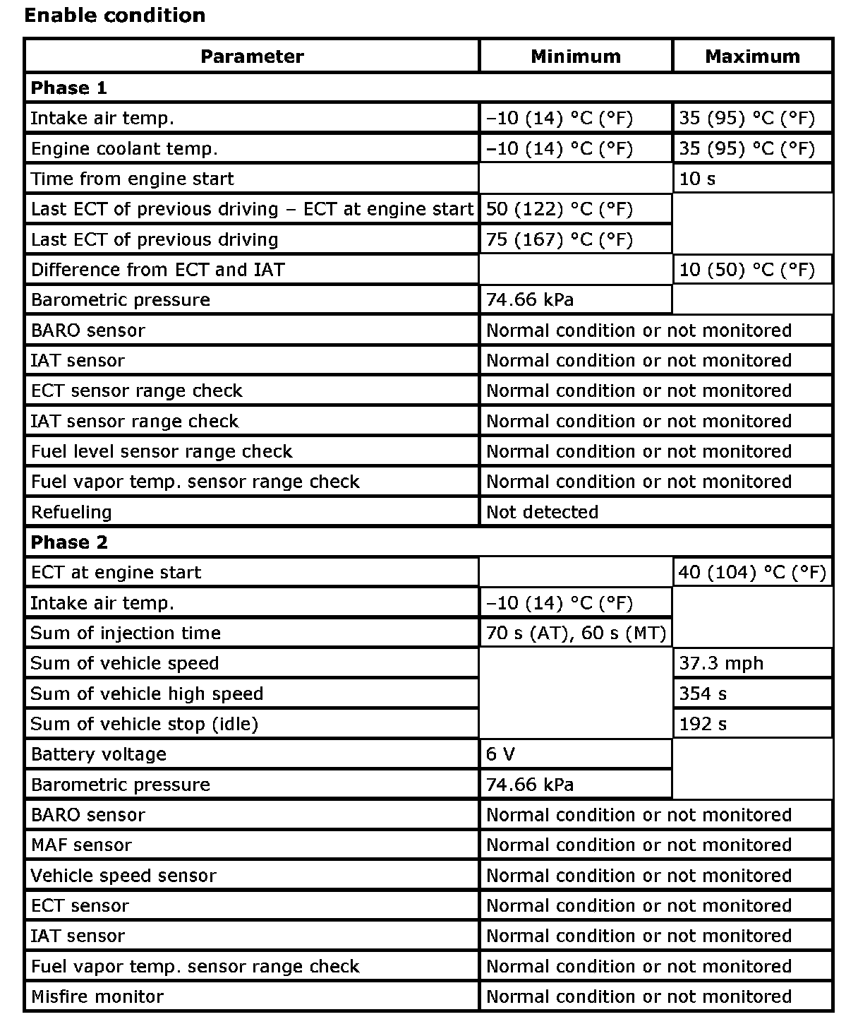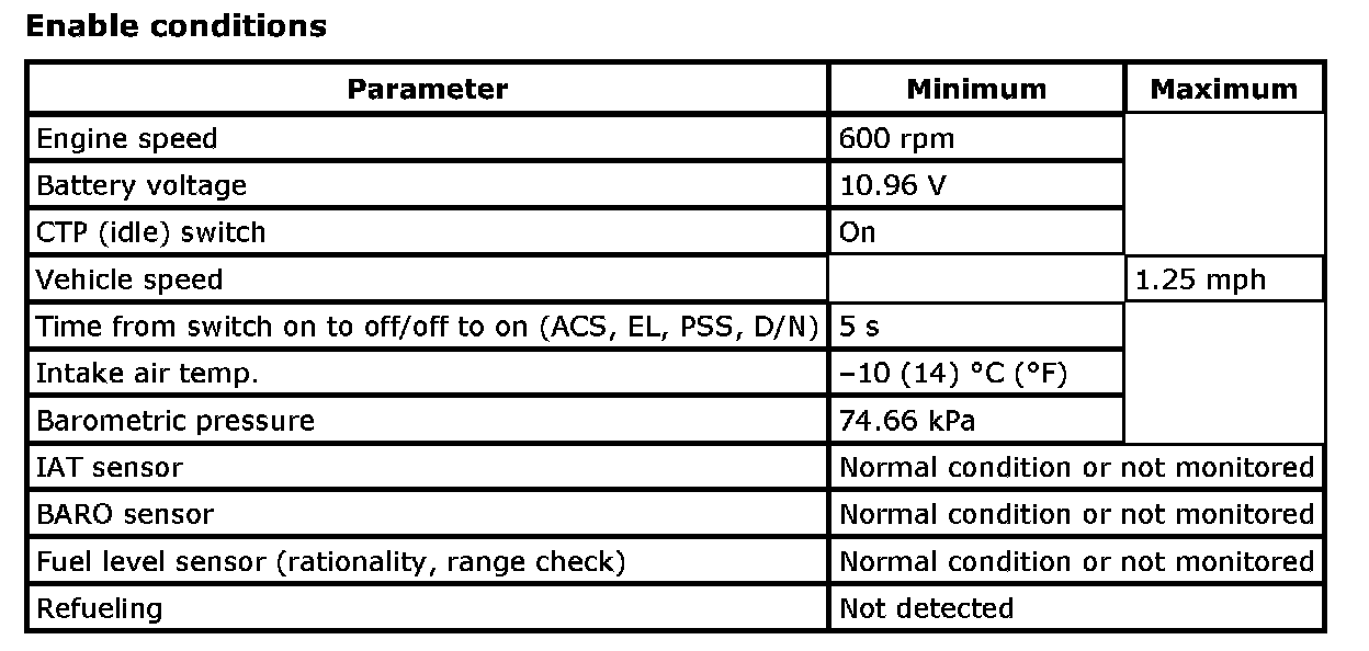 Fuel Vapor Temp. Sensor Rationality Monitor