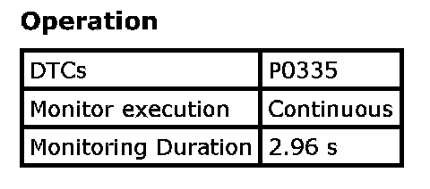 Refer to DTC P0335: Crankshaft Position Sensor Circuit. P0335