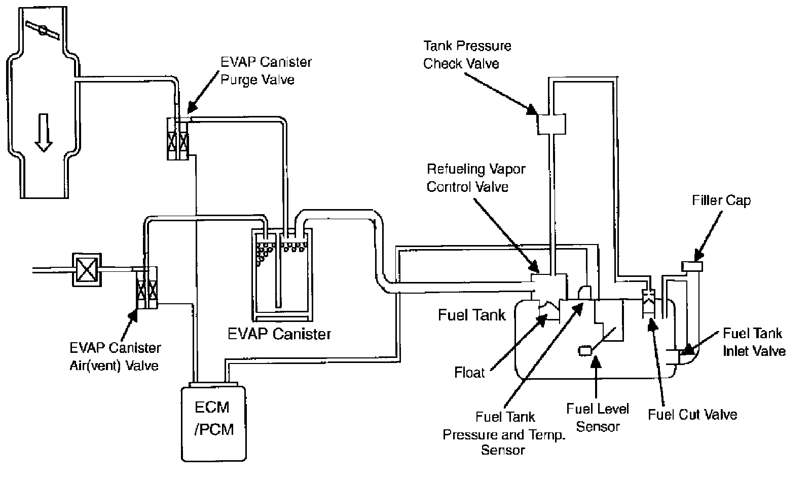 To monitor the EVAP control system, a fuel tank pressure sensor and an EVAP canister air (vent) valve are added to the system.