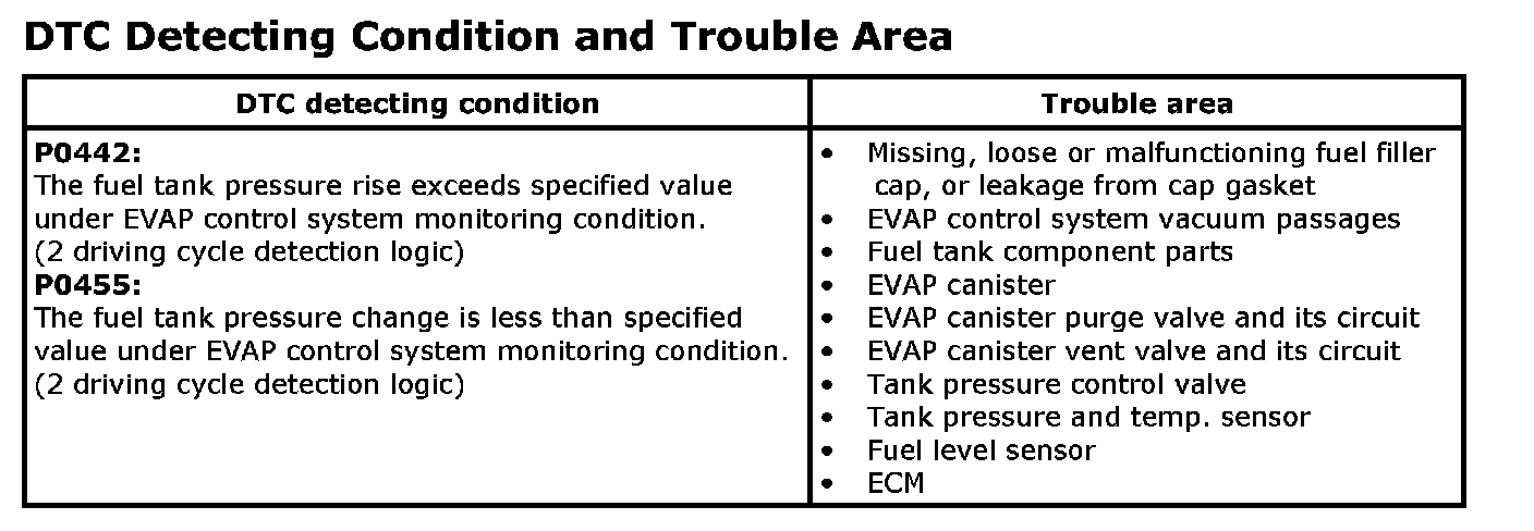 DTC P0442 / P0455: Evaporative Emission Control System Leak Detected (Small Leak) / (Gross Leak).