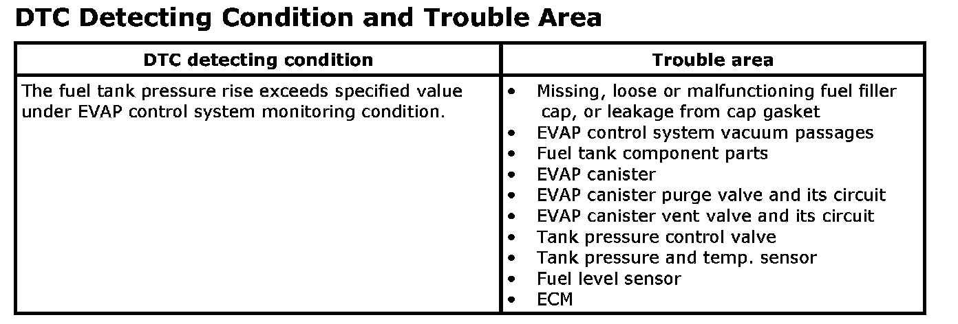 OBD System Description - EVAP Control System MonitorSystem Description / Monitoring Procedure