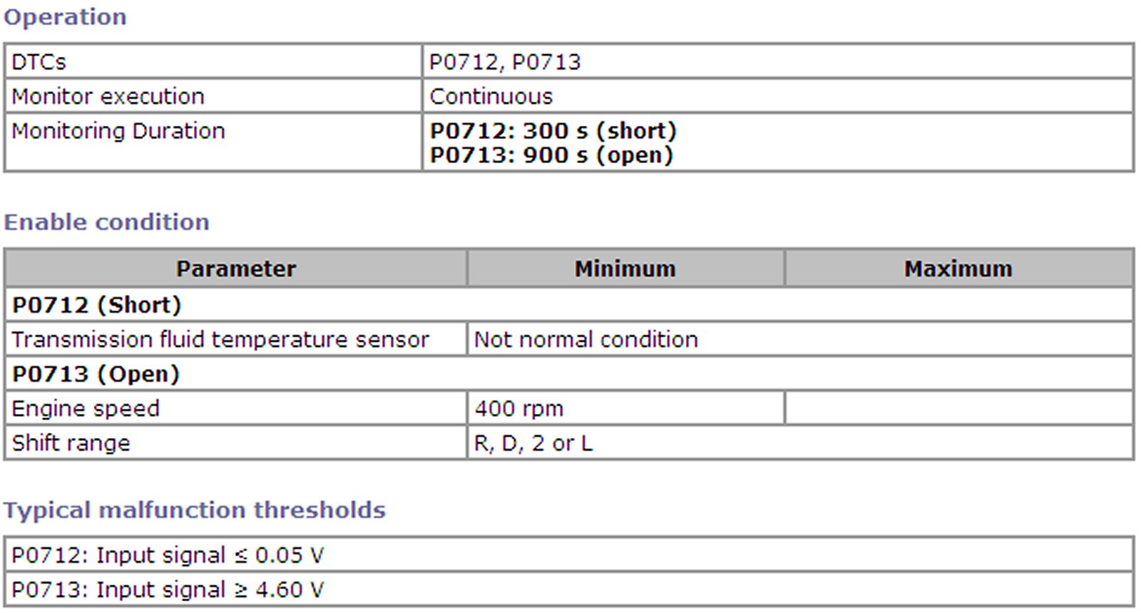 Transmission Fluid Temperature Sensor Circuit Monitor