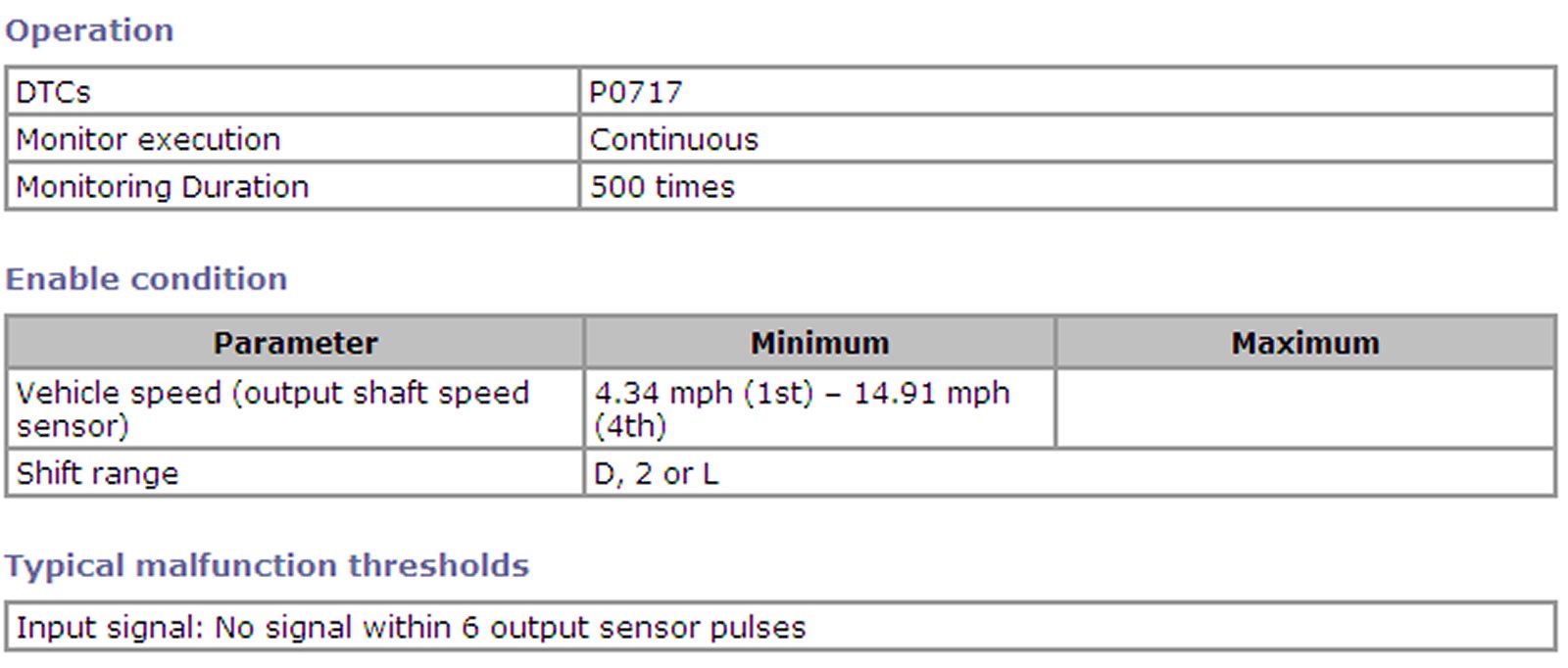 Output Shaft Speed Sensor Rationality Monitor