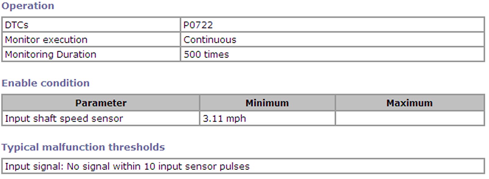 Input Shaft Speed Sensor Rationality Monitor