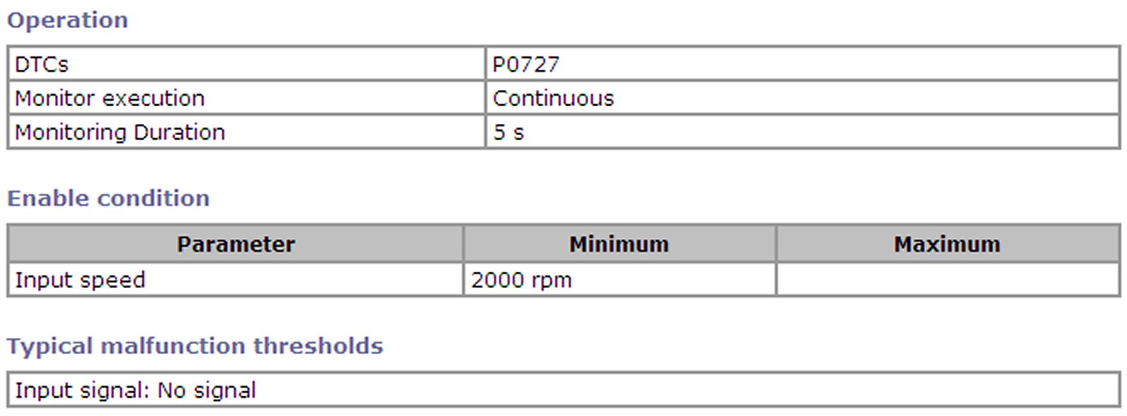 P0727 Refer to DTC P0727 (No. 35): Engine Speed Input Circuit No Signal.