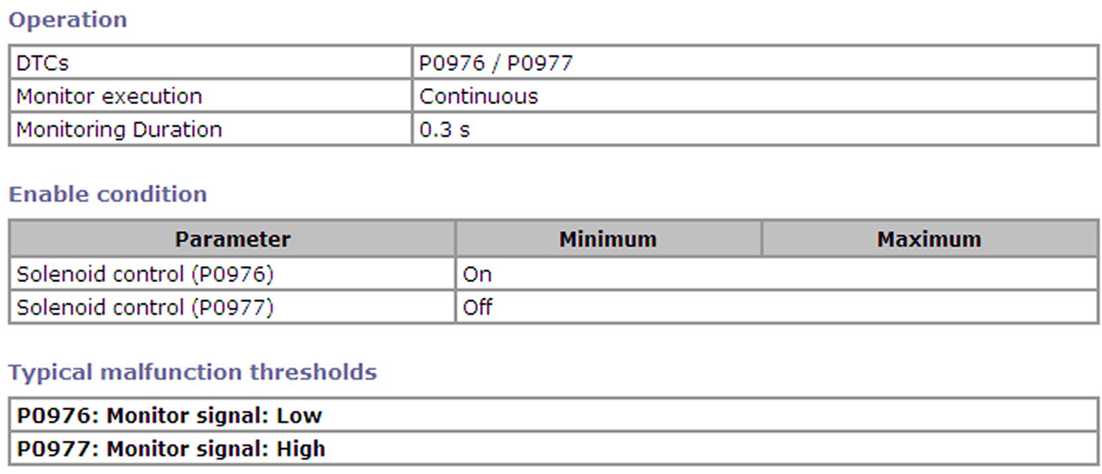 P0974, P0977 Refer to DTC P0974 / P0977 (No. 21 / No. 23): Shift Solenoid-A (No. 1) Control Circuit High / Shift Solenoid-B (No. 2) Control Circuit High.
