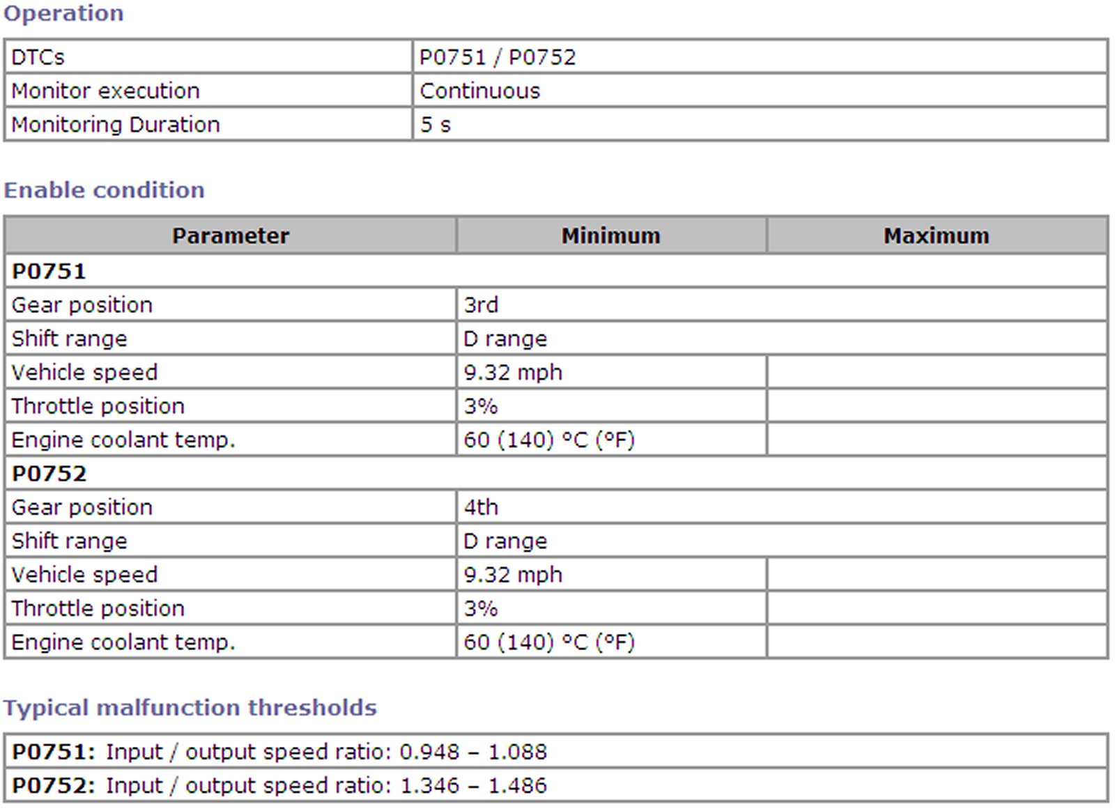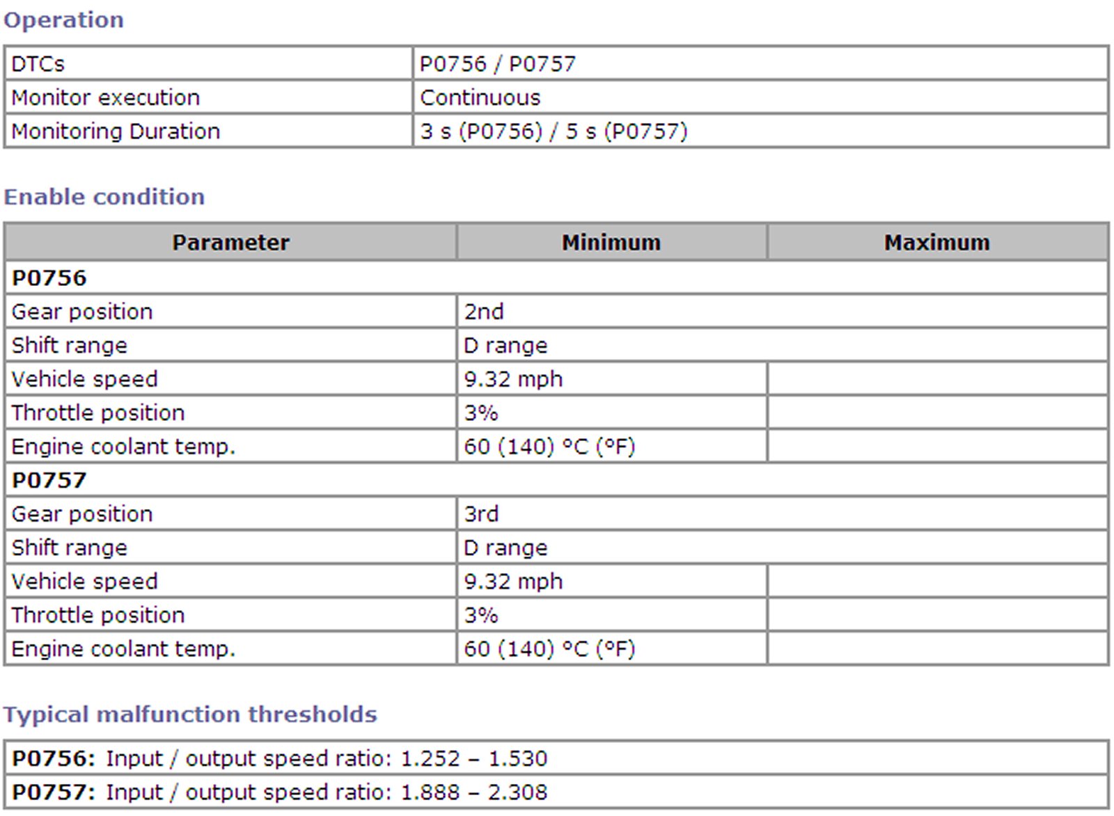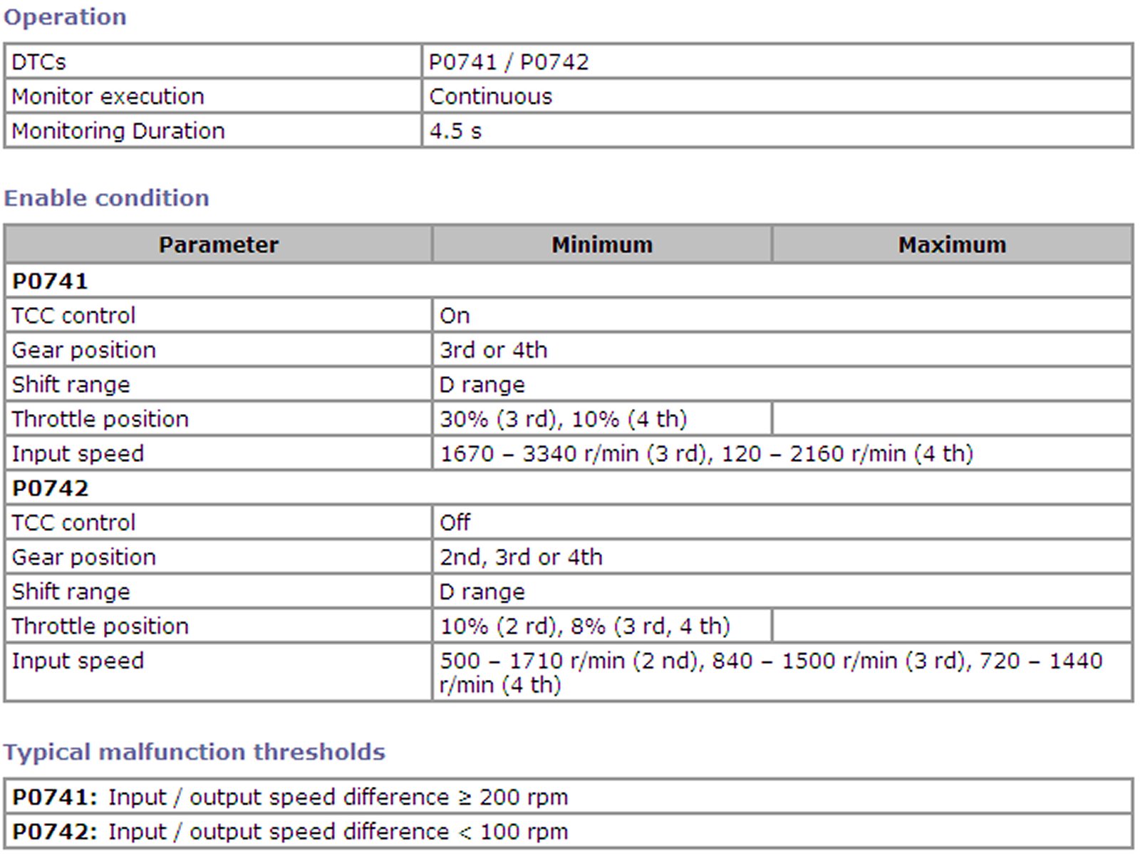 TCM (PCM) calculates the actual transmission gear ratio from input and output speed sensor signals and monitor it. TCM (PCM) detects a trouble when the actual transmission gear ratio is not equal to the ratio of each gear as commanded by TCM (PCM).