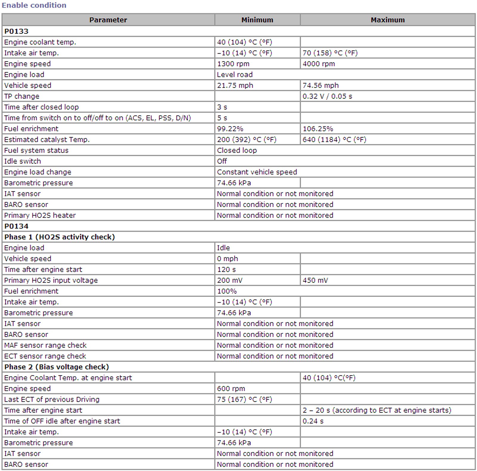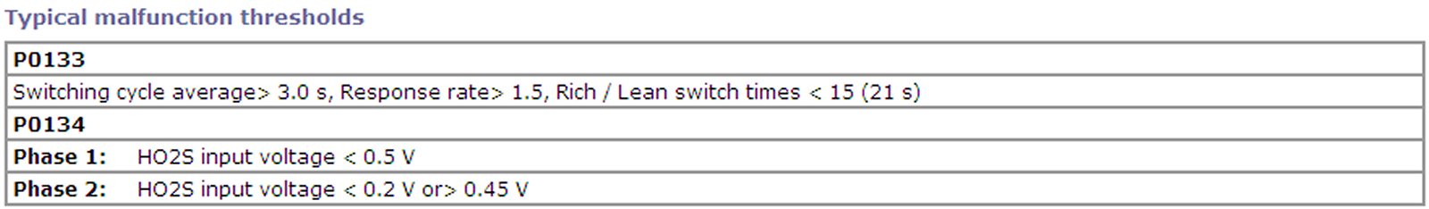 For a primary HO2S, the system monitors maximum and minimum voltage, lean-to-rich and rich-to-lean response rates, and switching cycles. The sensor is also monitored for activity continuously.