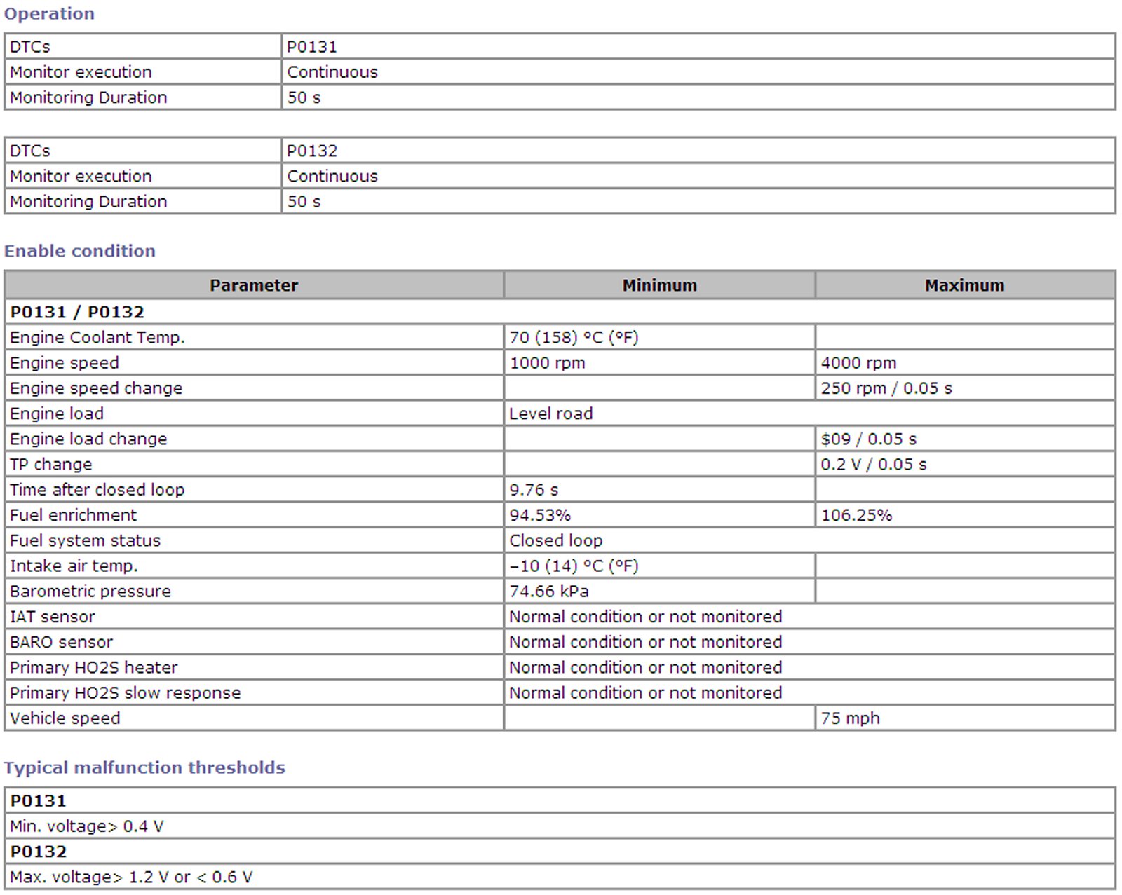 P0131, P0132 Refer to DTC P0131 / P0132: O2 Sensor Circuit Low / High Voltage (Sensor-1).