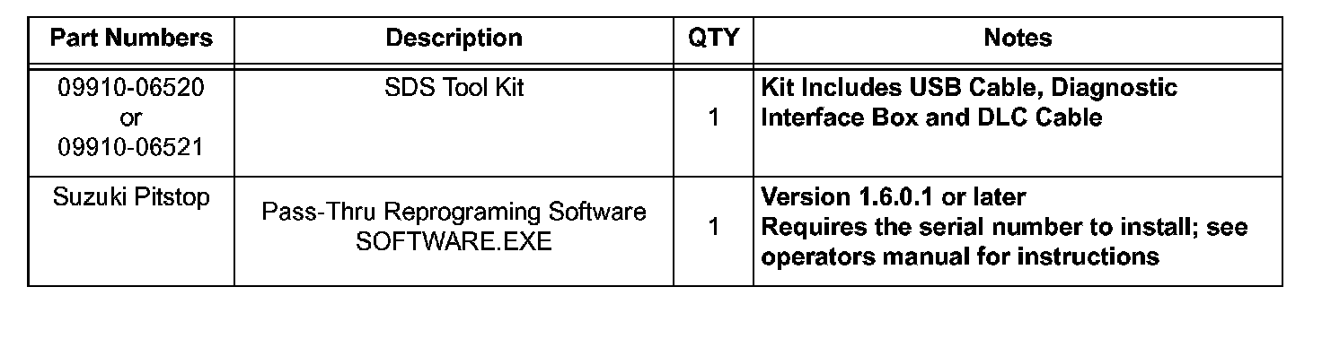 2. Download and review the Suzuki Pass-Thru Reprogramming Tool Operator's Manual. This must be read and understood COMPLETELY before attempting to reprogram the ECM.