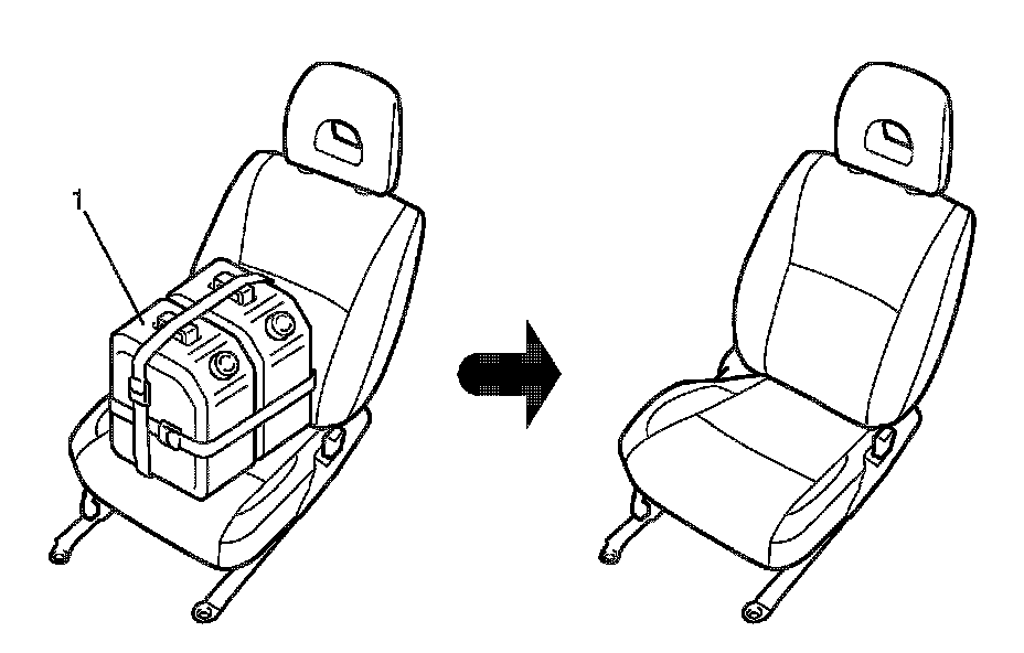 a. Place 40 kg (88.2 lb) weight (1) on passenger seat cushion and record each weight sensor load value.