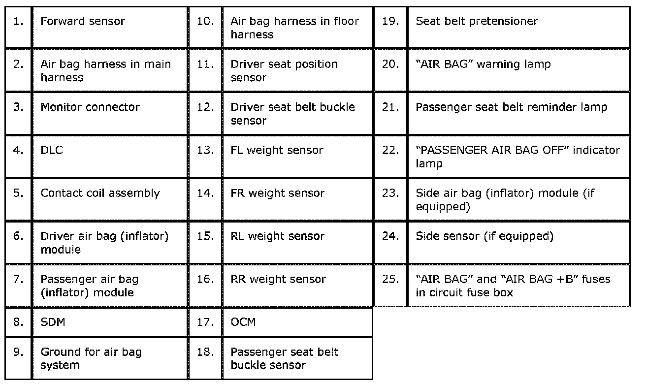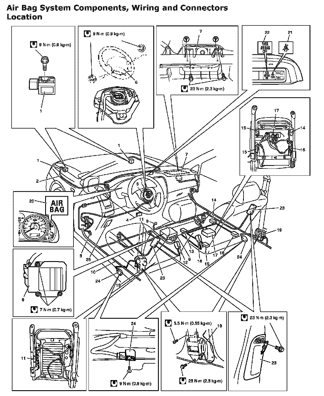 Air Bag System Components, Wiring and Connectors Location Part 1: