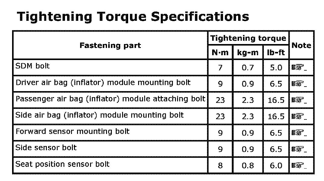 Tightening Torque Specifications