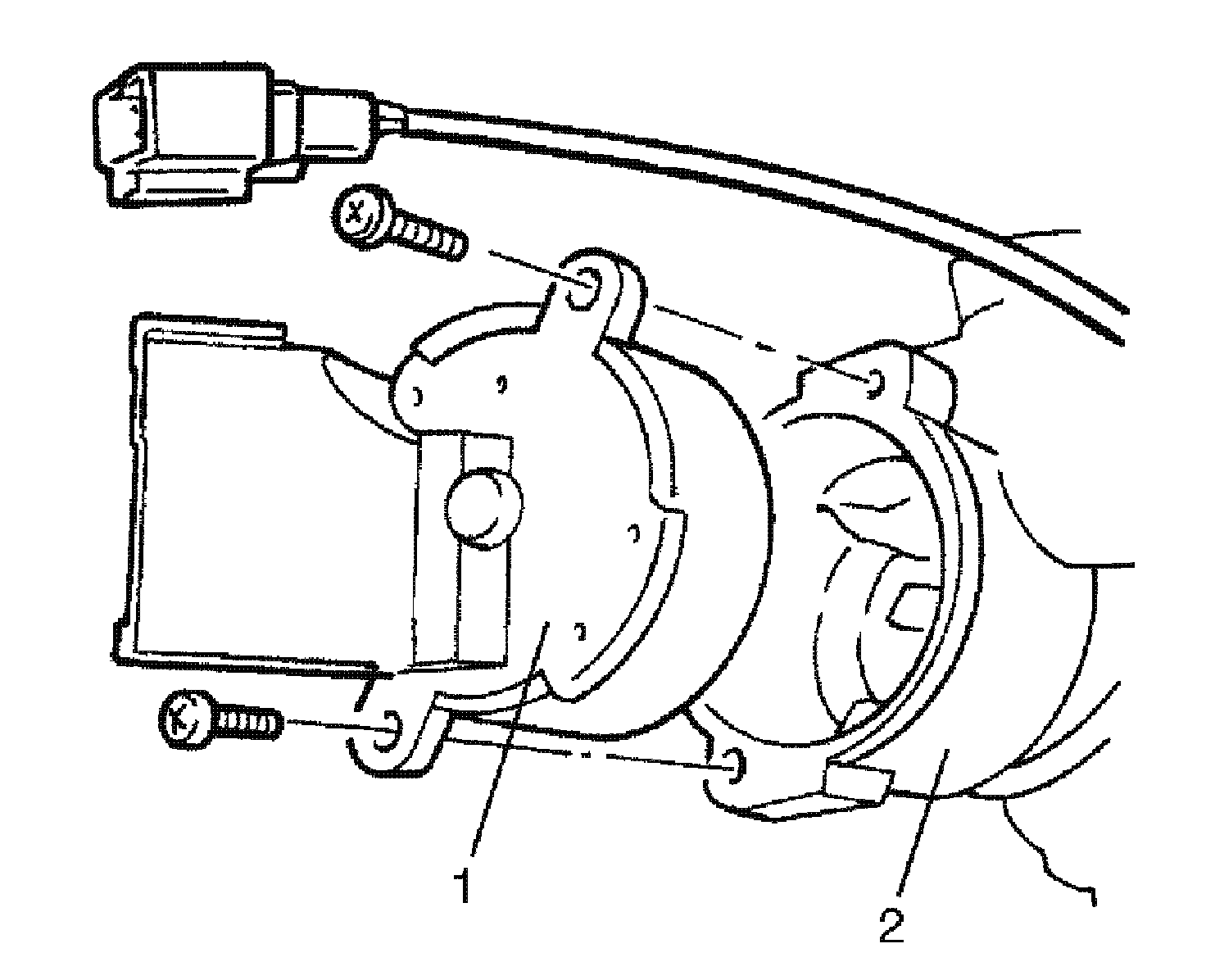 7. Remove ignition switch (1) from key cylinder (2).