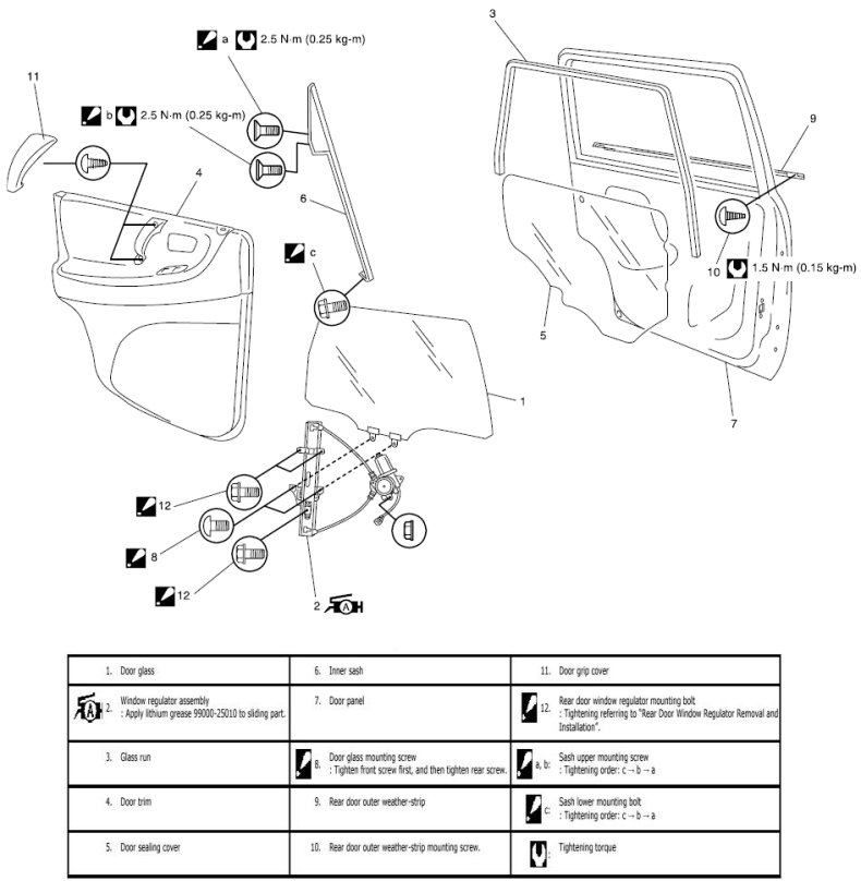 Rear Door Window Regulator Removal and InstallationRear Door Window Components: