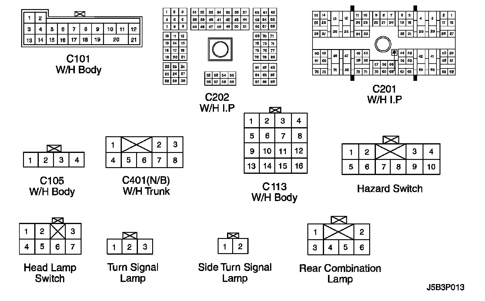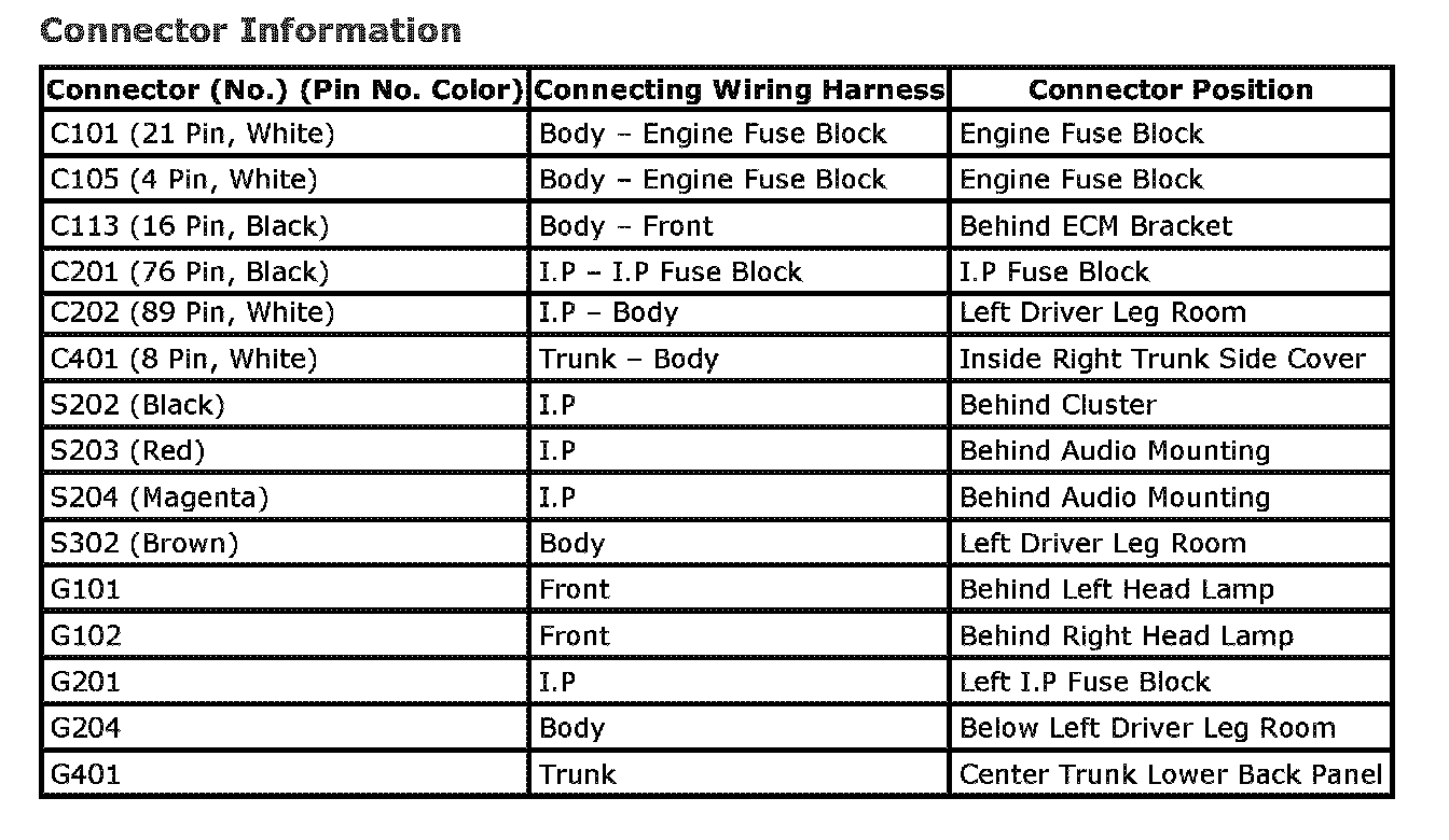 CONNECTOR IDENTIFICATION SYMBOL AND PIN NUMBER POSITION