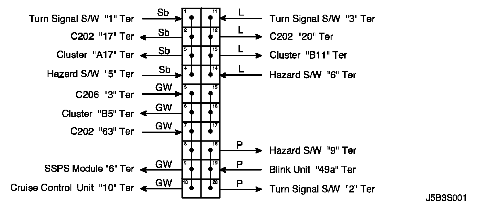 Hazard and Turn Signal Lamp Circuit Wiring Diagram:
