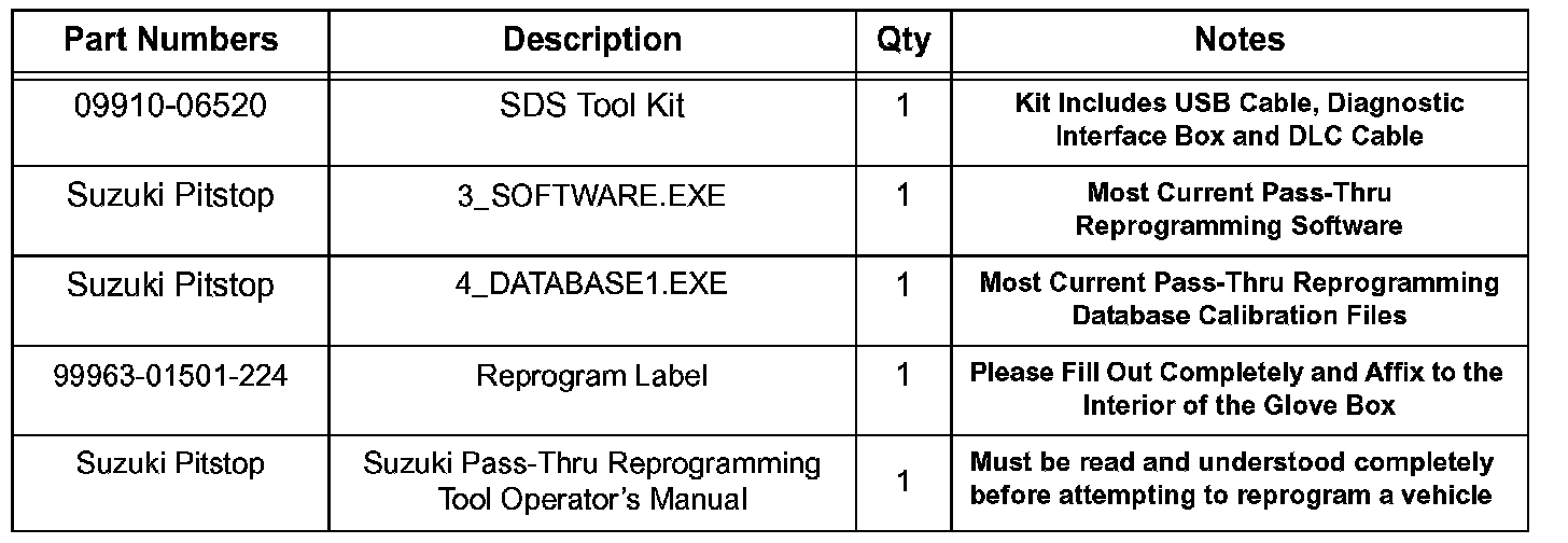 4. Download and unzip Suzuki Pass-Thru Reprogramming Data Base "4_DATABASE1.EXE" onto your PC. Follow the procedure in Section 3.2 of the Operator's Manual to update the Database files. This step is only required to be done once to accommodate all vehicles covered under this TSB.