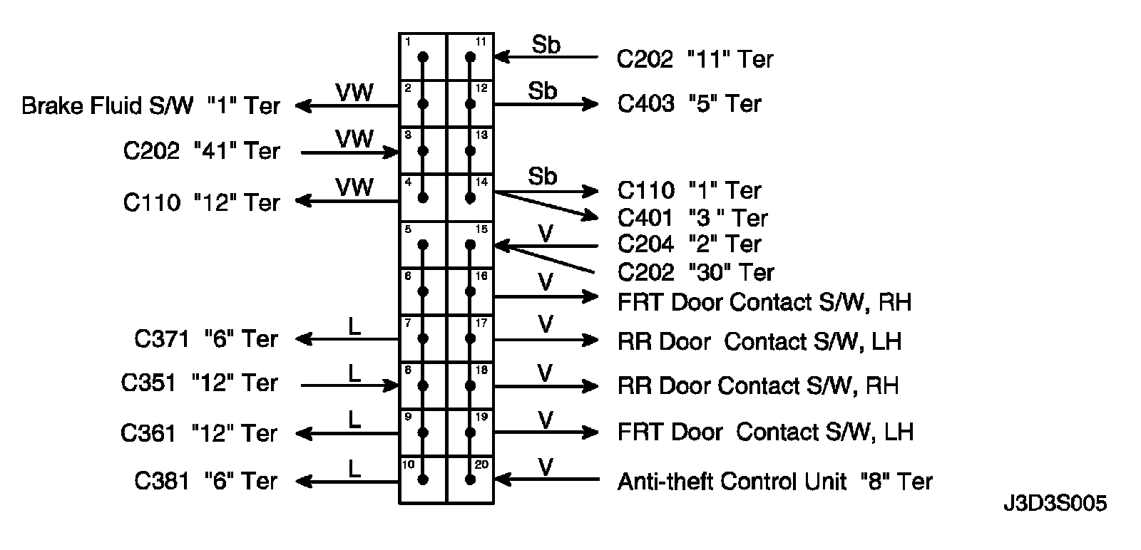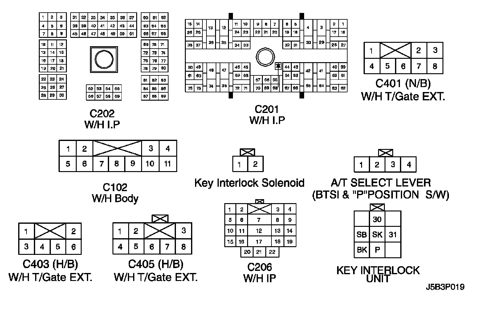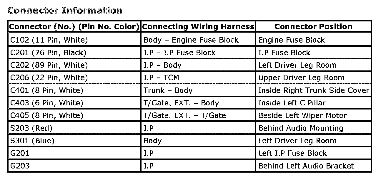 CONNECTOR IDENTIFICATION SYMBOL AND PIN NUMBER POSITION