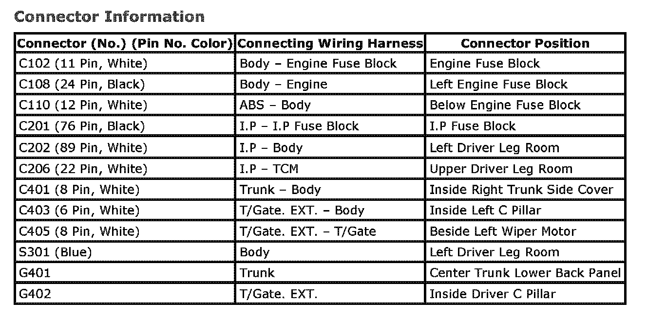 CONNECTOR IDENTIFICATION SYMBOL AND PIN NUMBER POSITION