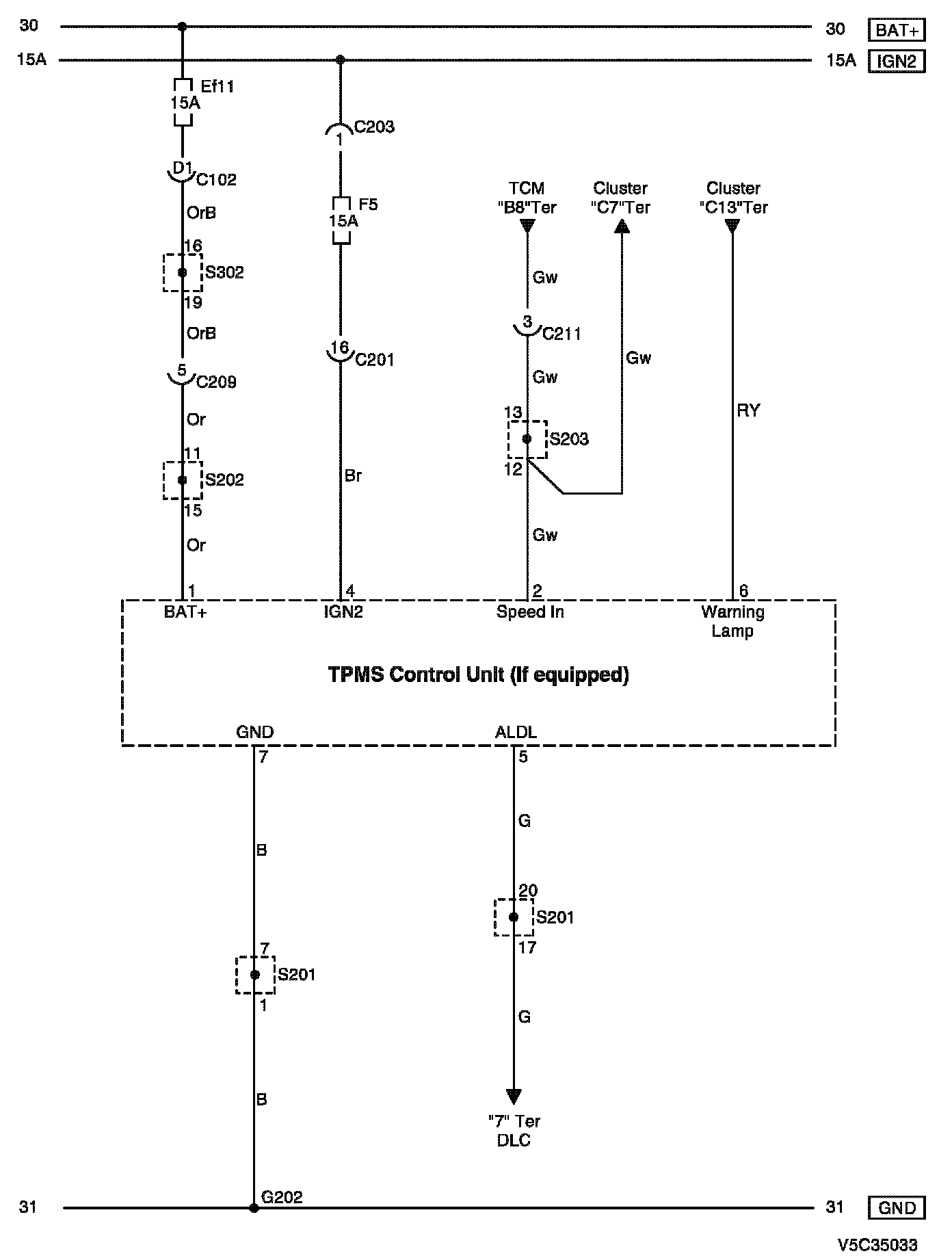 TPMS (Tire Pressure Monitoring System) Circuit (If equipped) Diagram:
