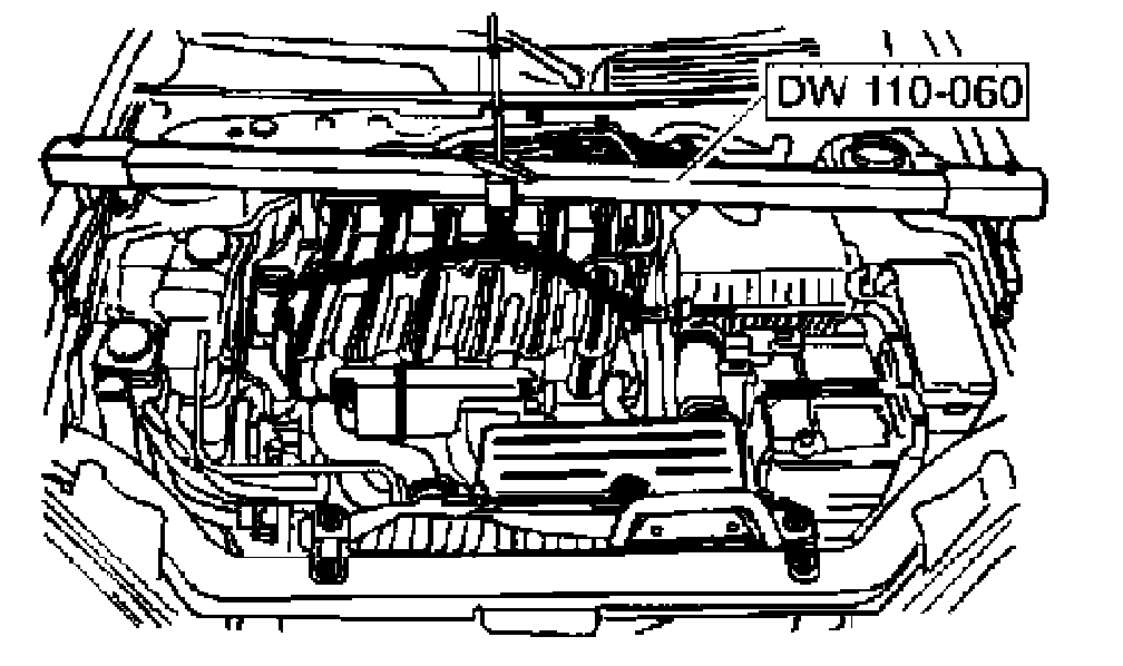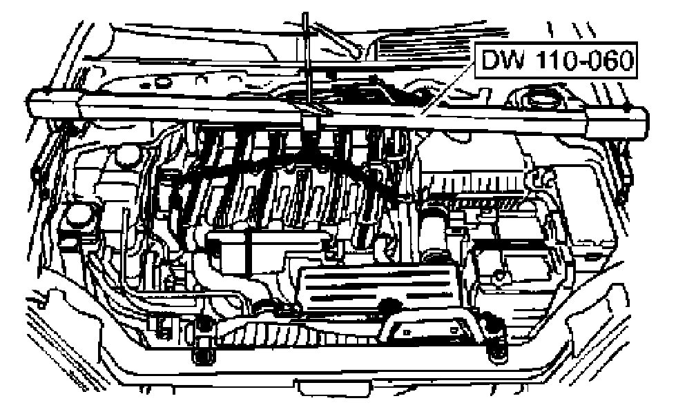 12. Support the engine and transaxle assembly using the engine assembly lift support DW110-060.