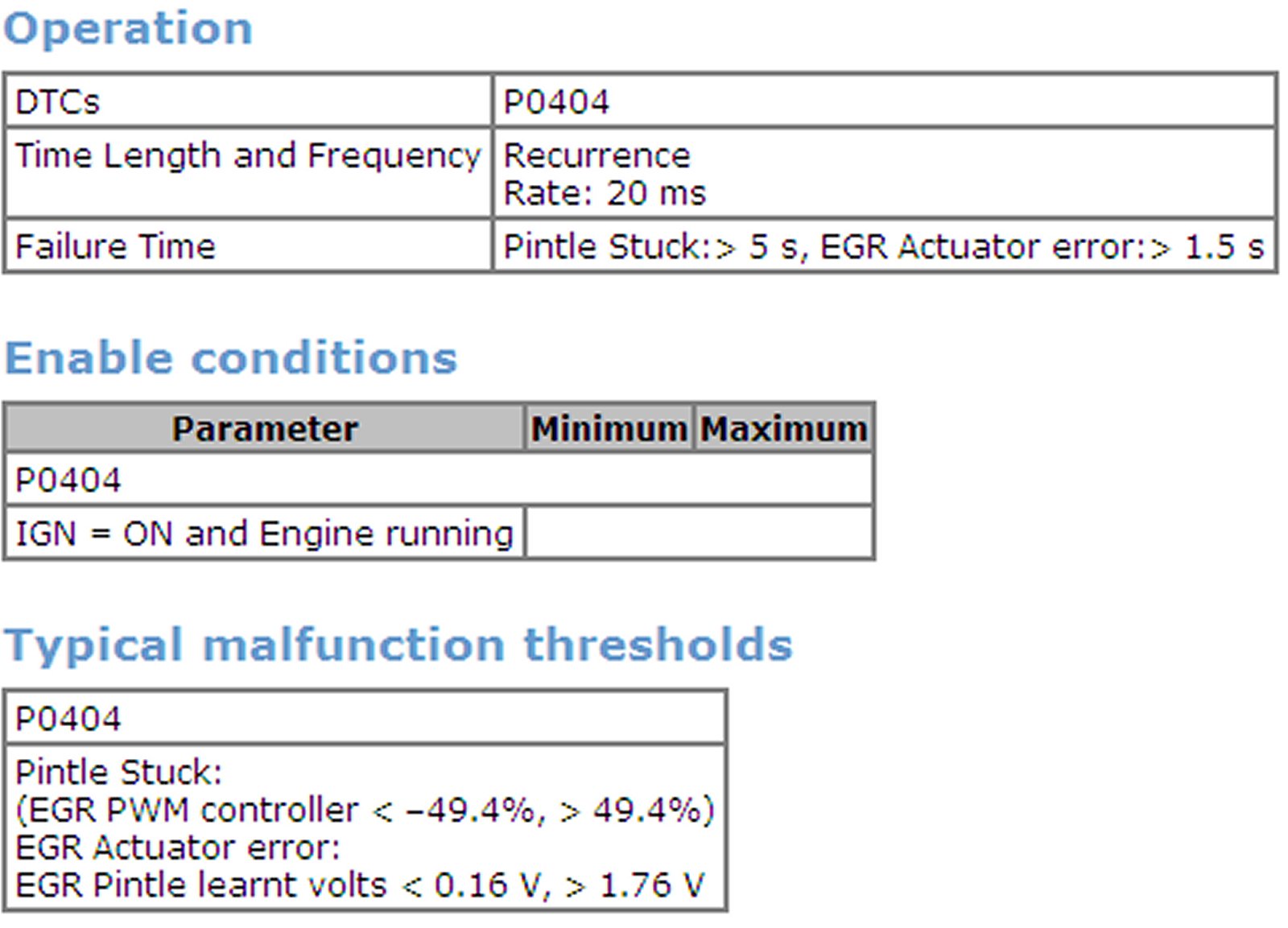 P0404 Refer to [DTC P0404: Exhaust Gas Recirculation (EGR) Valve Failure].