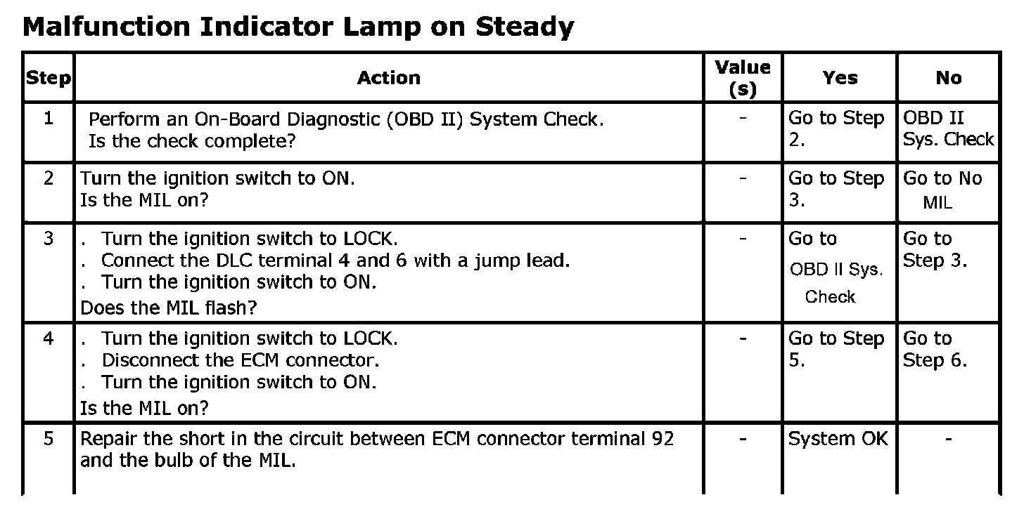 Malfunction Indicator Lamp On SteadyWiring Diagram: