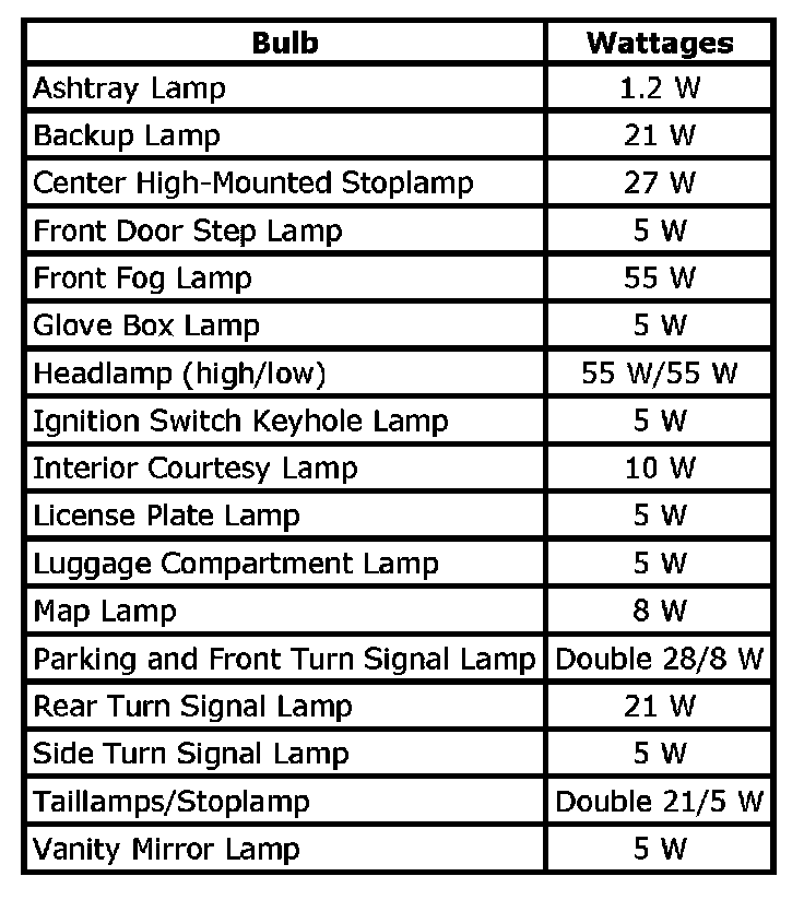 Bulb Usage Chart: