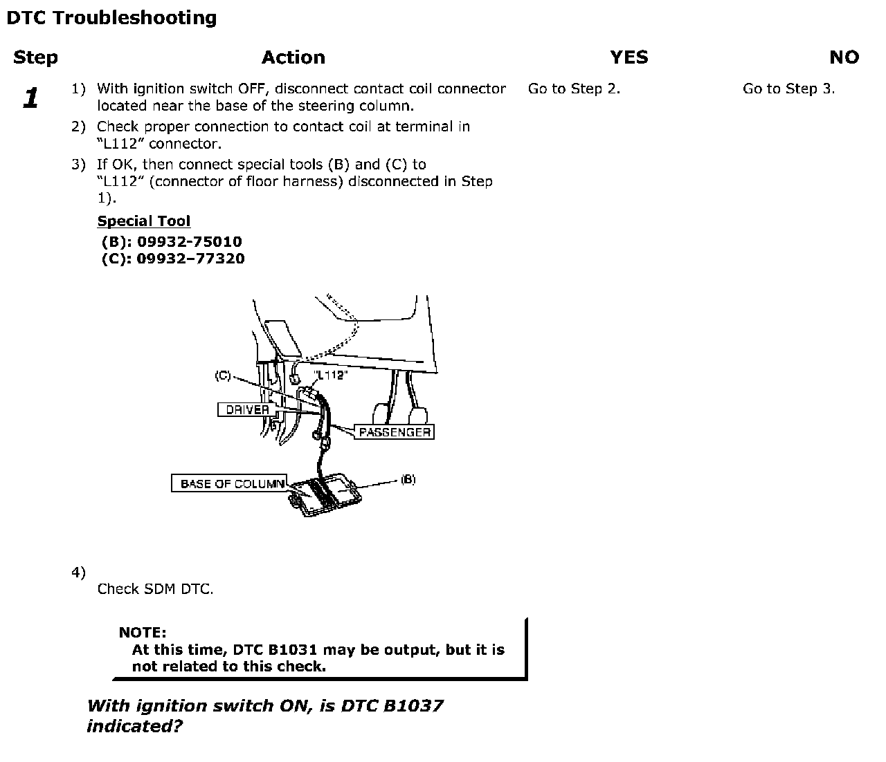 STEP 1: Check whether malfunction is in contact coil and driver air bag (inflator) module (2nd stage) or the others