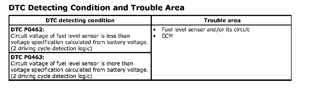DTC P0463 : Fuel Level Sensor Circuit Low/HighWiring Diagram: