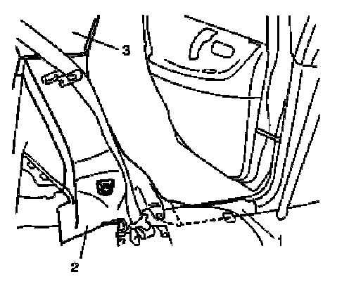 2. Remove rear side sill scuff (1), rear side lower trim (2) and rear side upper trim (3).